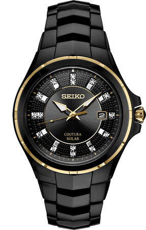 De la colección Coutura, este elegante reloj para caballero combina una caja y brazalete de acero inoxidable con acabado en negro ionizado y acentos en oro, junto con una corona engastada con cabujón. Su sofisticada carátula negra con efecto rayos de sol destaca por sus 15 diamantes como indicadores y un práctico calendario de fecha, protegidos por un cristal de zafiro resistente a los rayones. Impulsado por luz, su tecnología Solar Cell garantiza eficiencia energética con una reserva de marcha de hasta 10 meses sin necesidad de cambio de batería. Resistente al agua hasta 100 metros, este modelo fusiona lujo y rendimiento para un estilo impecable.