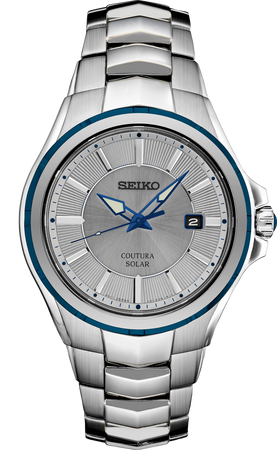 De la Colección Coutura. Ofreciendo la combinación perfecta de diseño y estilo deportivo para quienes están en constante movimiento, Coutura está diseñada para una experiencia de medición del tiempo sin esfuerzo. Los diseños más recientes presentan nuevas variaciones de color con toques contrastantes y un enfoque en el lujo moderno. Destaca este sofisticado reloj, protagonizado por una carátula gris con acentos en azul, calendario de fecha y manecillas e índices con LumiBrite, además de un bisel con acabado en ion azul. Fabricado en acero inoxidable con líneas vigorosamente angulares, este reloj versátil incluye fondo de caja atornillado, cristal de zafiro y corona con cabujón. Funciona con cualquier fuente luminosa, sin necesidad de cambio de batería. Su célula solar de alta eficiencia proporciona una reserva de marcha de 10 meses con una carga completa. Resistente al agua 100 metros (10 bares).