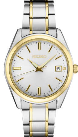 De la Colección Essentials. Con un estilo clásico de vestir y deportivo, este diseño perfectamente equilibrado combina un minimalismo sofisticado con versatilidad. La carátula blanca limpia incluye un calendario de fecha y manecillas LumiBrite. Fabricado en acero inoxidable con acabado bicolor y cristal de zafiro para una resistencia superior a los rayones. Resistente al agua 10 bares, 100 metros.